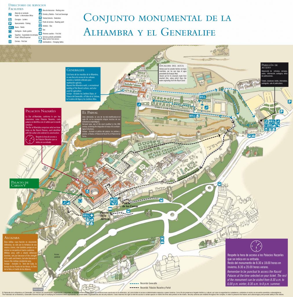 La visita al conjunto monumental se hará en el día que aparece en la entrada. La hora de Palacios Nazaríes es la indicada en la misma y el resto del conjunto (Alcazaba, Partal y Generalife) se podrá visitar de 08:30 horas hasta cierre.